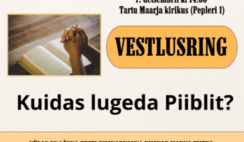 7. detsembril kell 14 vestlusring Piibli teemadel. Külas on Lõuna-Eesti piiskopkonna piiskop Marko Tiitus